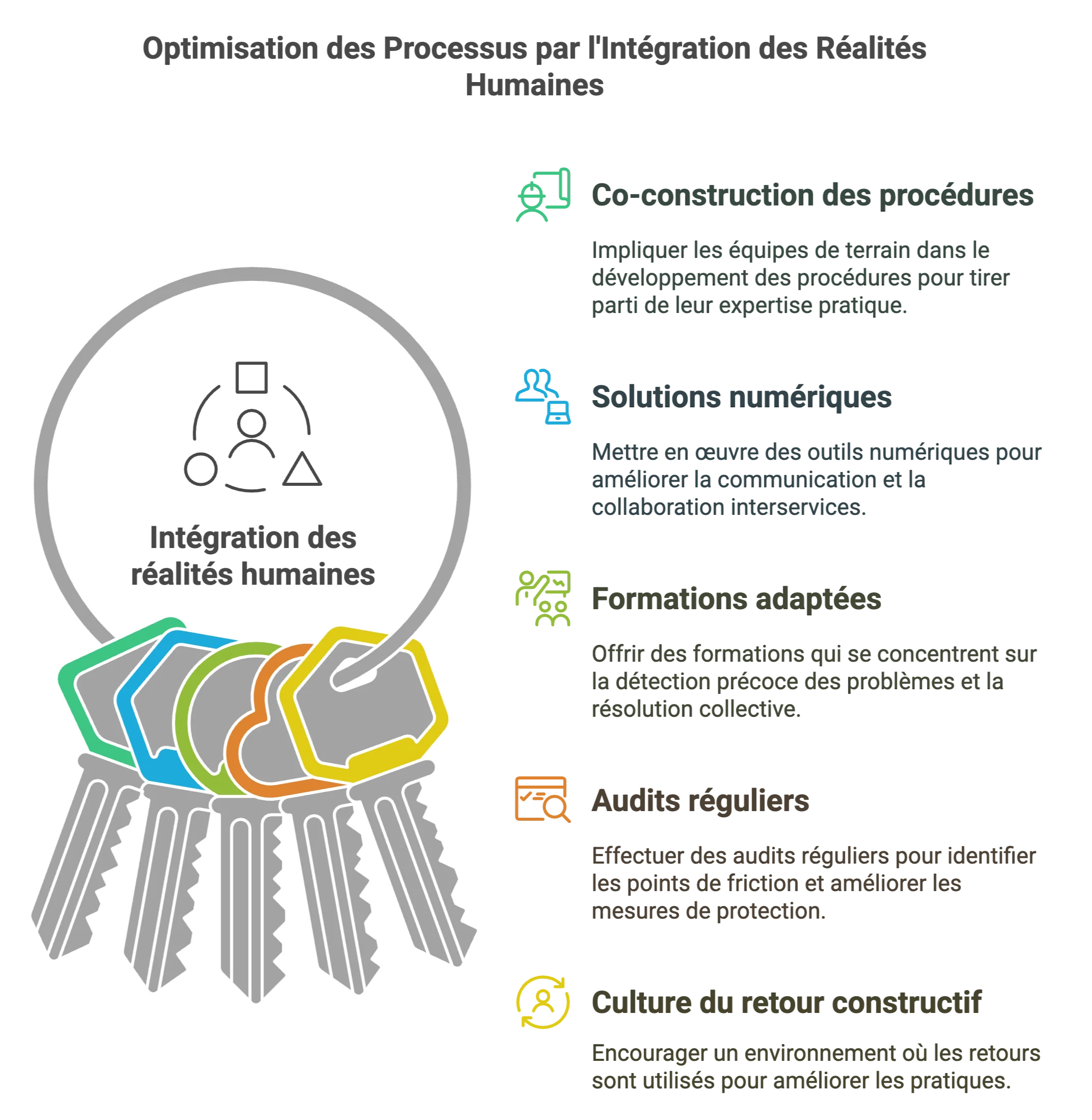 Intégrer les réalités humaines s’avère primordial pour ajuster les processus aux contraintes opérationnelles. Voyons comment les entreprises peuvent concrètement agir :